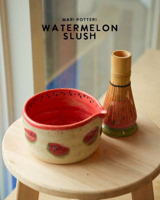 MARI POTTERI WATERMELON SLUSH MATCHARI (matcha bowl) & chasen holder set