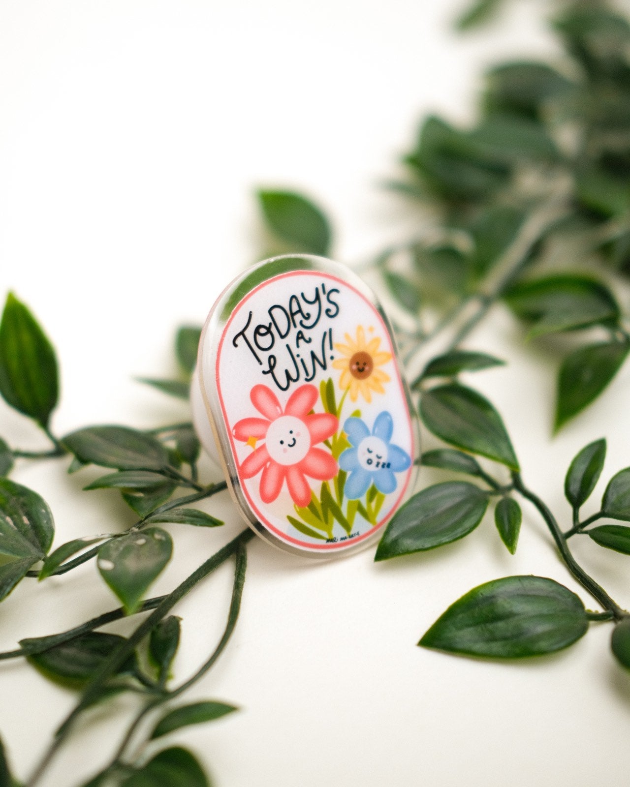 Stand out with the ACRYLIC FUN GRIP - TODAY'S WIN popsocket! Featuring original handdrawn designs, this sturdy mobile accessory is both beautiful and functional. Express yourself and add a touch of personality to your phone with this stylish and practical popsocket.