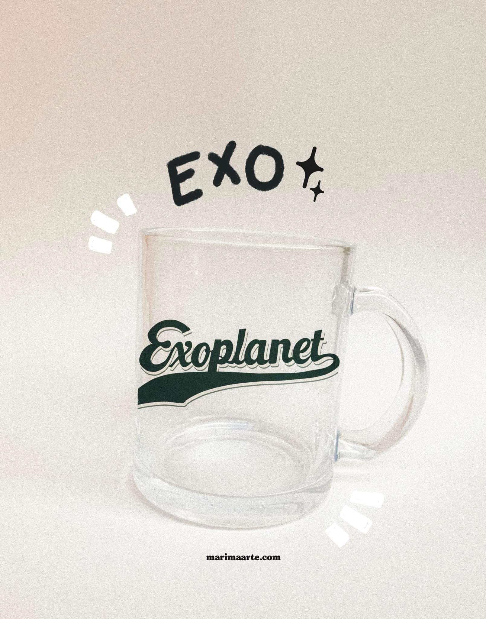 EXO comic logo glass mug.