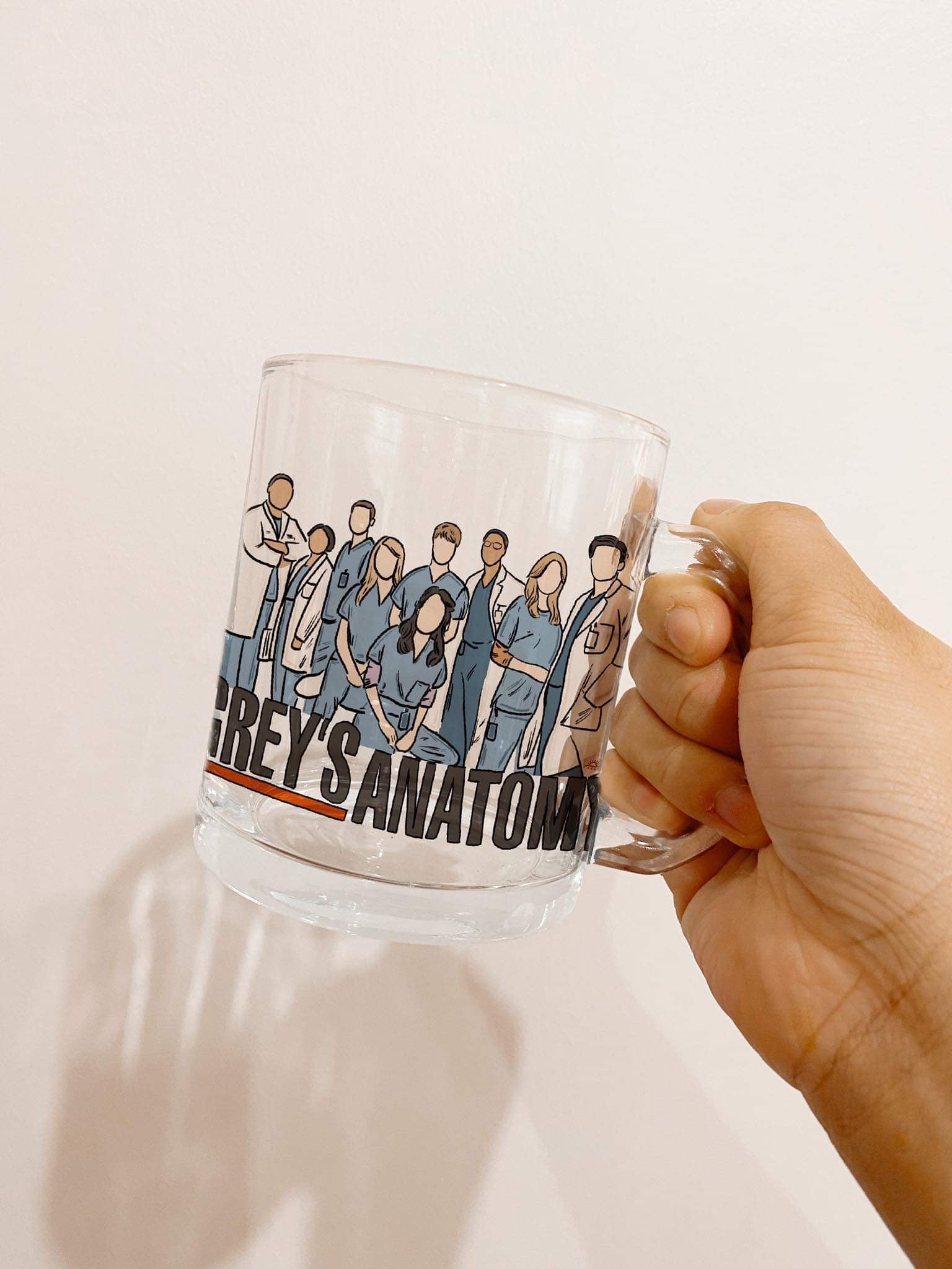11 OZ GREYS ANATOMY GLASS MUG. Good for hot & cold drinks.